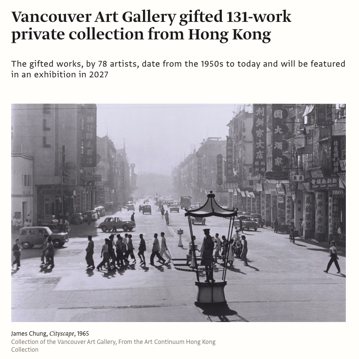 Vancouver Art Gallery gifted 131-work private collection from Hong Kong